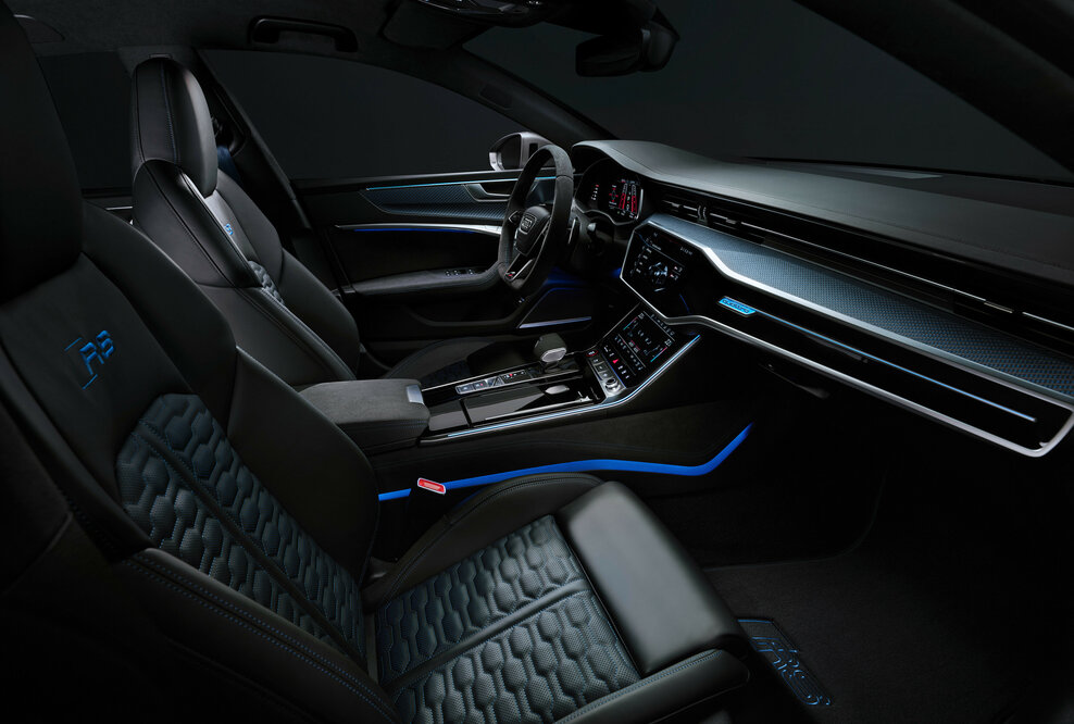 Weniger ist manchmal mehr: Dank reduzierter Dämmung zwischen Motor- und Innenraum und im hinteren Teil des Fahrzeugs begeistern RS 6 Avant performance2 und RS 7 Sportback performance3 mit spannender Akustik auf neuem Niveau, zudem werden acht Kilogramm Gewicht eingespart. Insgesamt hat der RS 6 Avant performance2 ein Leergewicht von 2.090 Kilogramm, der RS 7 Sportback performance3 wiegt 2.065 Kilogramm.