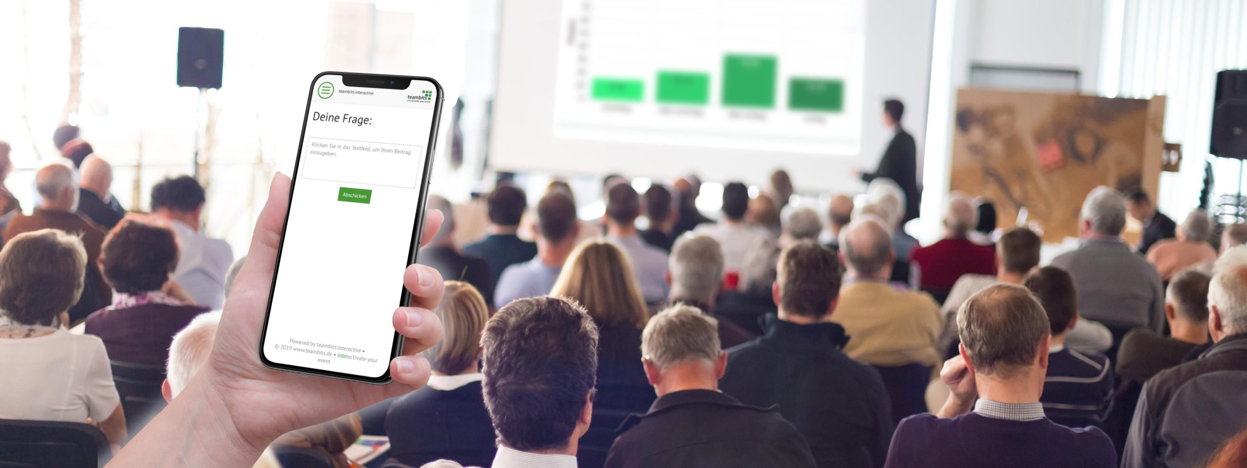+ Pressefoto groß: "Teilnehmer beteiligt sich mit Smartphone an der Konferenz"